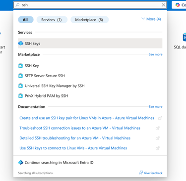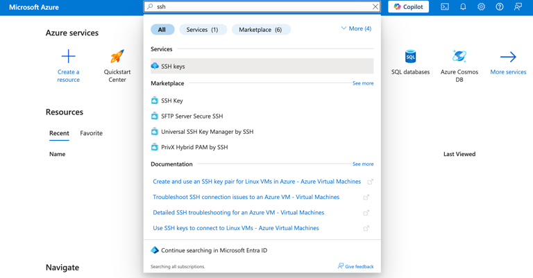 Type SSH in the azure portal’s search box.