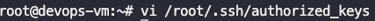 Edit the authorized_keys file in devops-vm by using vi /root/.ssh/authorized_keys and paste the public key from jumphost which described in above.