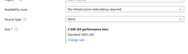 Choose Size as 2 GiB and choose storage type as Standard HDD.