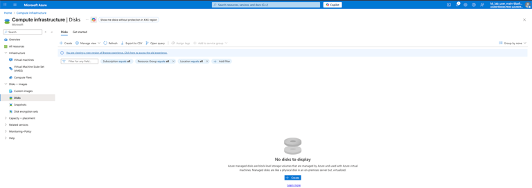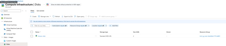 Try to create the disk by using the disk tab which is under Azure Compute Infrastructure.