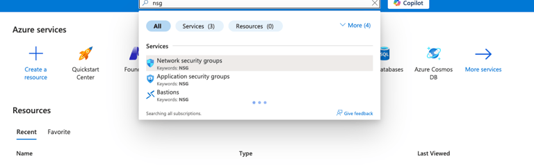 Type NSG in the search box and choose Network Security Groups.