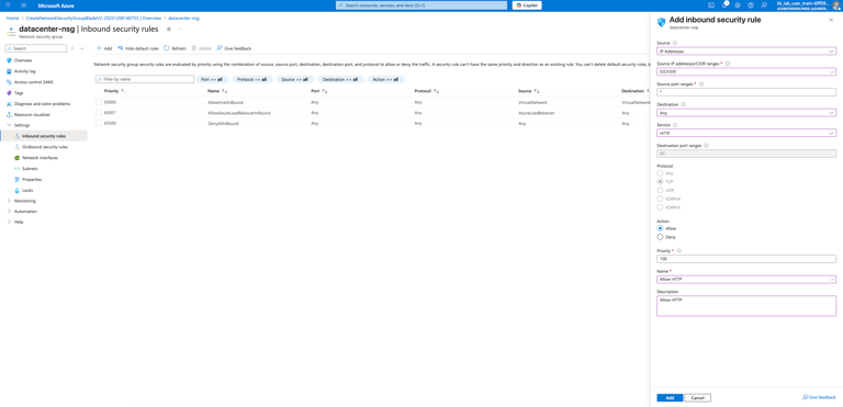 Name of the NSG should be datacenter-nsg.