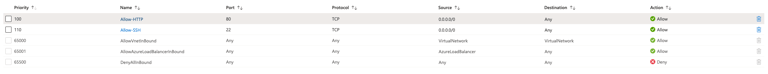 Add an inbound security rule named Allow-HTTP for HTTP service on port 80, with the source CIDR range of 0.0.0.0/0.