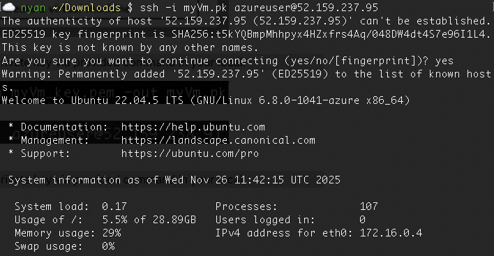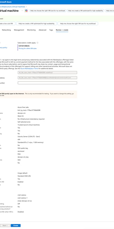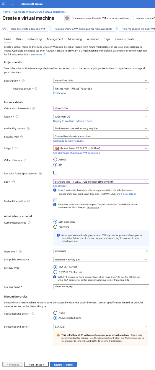 Attach a default Network Security Group (NSG) that allows inbound SSH (port 22).