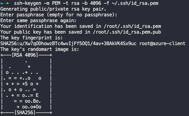 Generate an SSH public key on the azure-client host and associate it with the VM for SSH access.