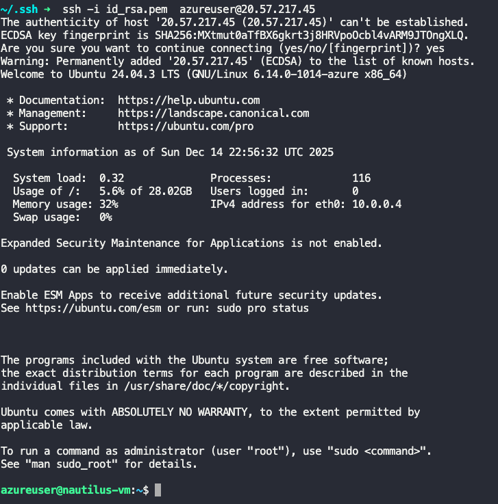 ssh -i <private-key-file-path> azureuser@20.57.217.45