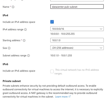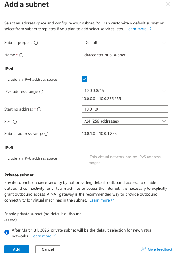 Add a subnet called datacenter-pub-subnet under VNET.