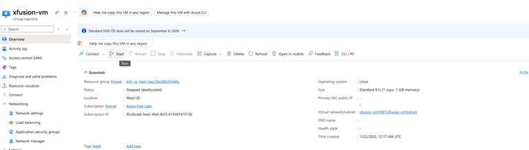 An existing VM named xfusion-vm and a network interface named xfusion-nic already exist in the West US region.
